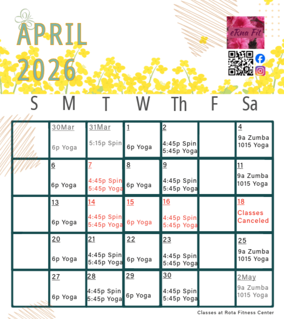 April 18, both 0900 Zumba and 1015 Yoga are canceled